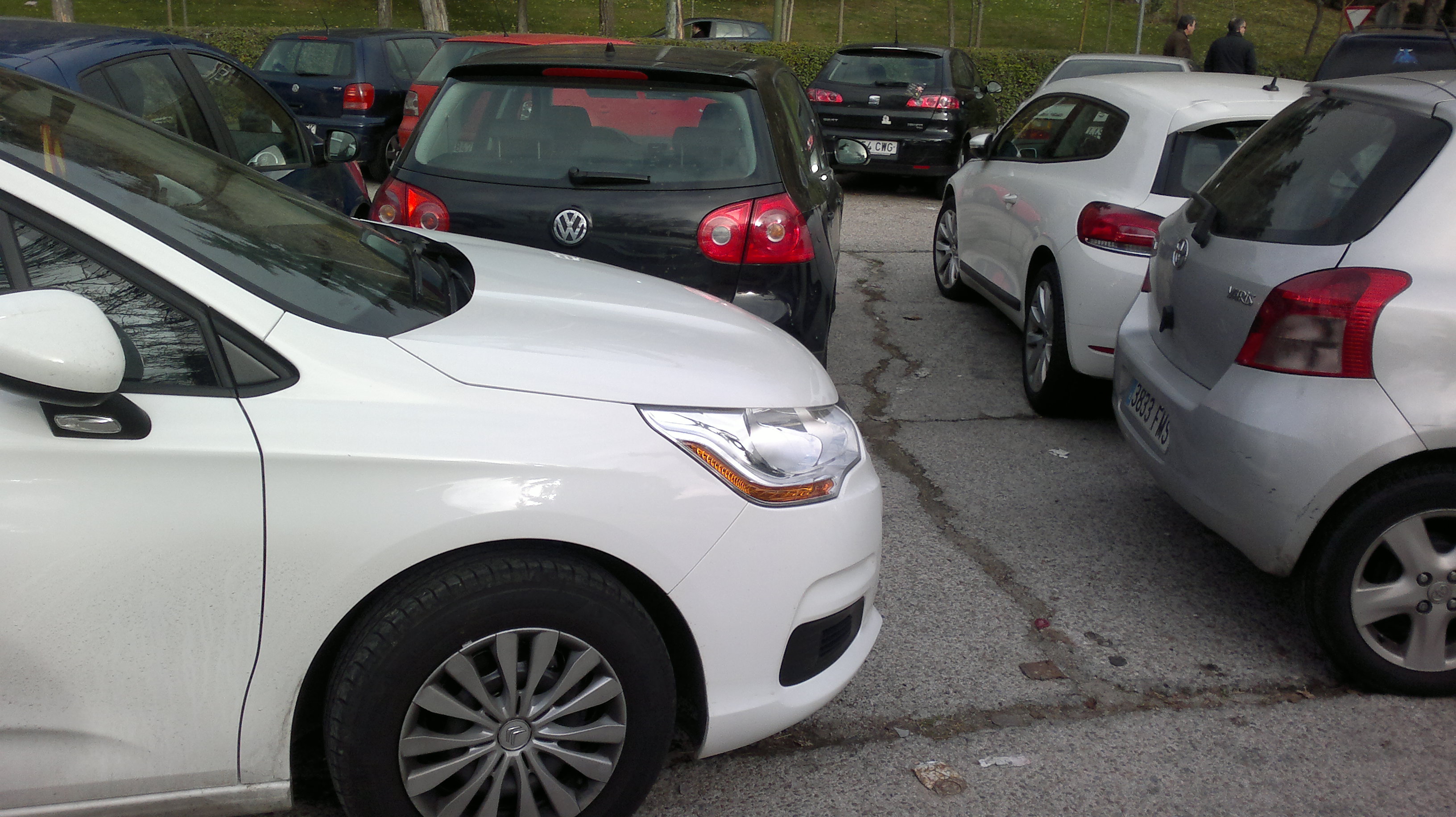 No había ningún vehículo delante del otro y multaron a todos los que estábamos en la misma fila, esta forma de aparcar es de practica habitual y llevo cinco años dejando en este parking mi vehículo, siempre se aparca igual, no hay ninguna señal que lo prohíba ni que indique la forma de aparcar lo vehículos.
