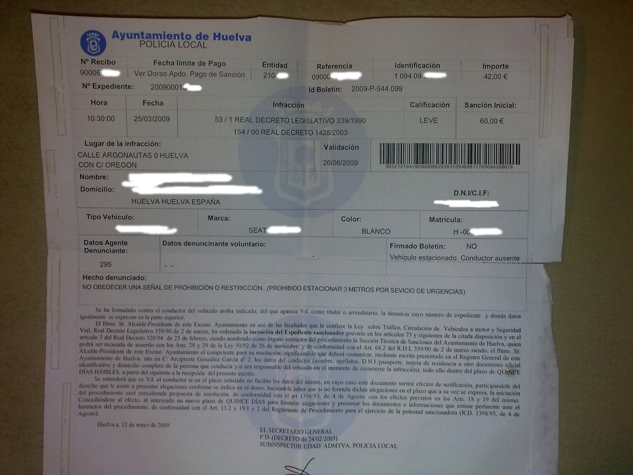 Me han cascado una multa de estacionamiento, pero en la notificación la matrícula que aparece no es exactamente la mía. Me explico, la mía es H 2222 X, y la que aparece en la notificación es H 002222 X, es decir, le han puesto dos ceros que está claro que no existen en mi placa. Se puede considerar eso un error y puedo recurrir la multa ??
